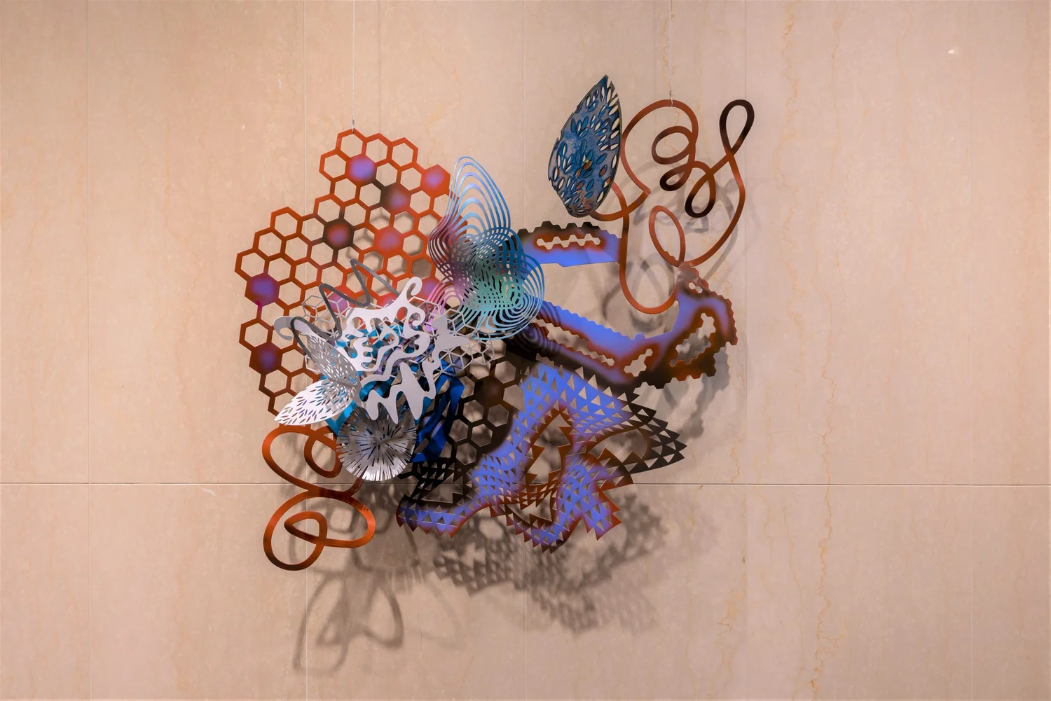 PATTERNS OF THOUGHT, is a series of wall sculptures commissioned for Brookfield Place in New York for a one person show that ran from January to April in 2022. Each of the five sculptures in the exhibit is a different poetic representation of an aspect of the varying functions of the human mind, translated through the language of pattern.